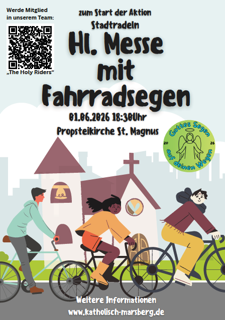 Am Montag, 01. Juni, werden wir um 18.30 Uhr eine hl. Messe in der Propsteikirche Niedermarsberg feiern, um das Stadtradeln sozusagen für „The Holy Riders“ zu eröffnen. Im Anschluß an diese Messe gibt es einen Fahrradsegen.